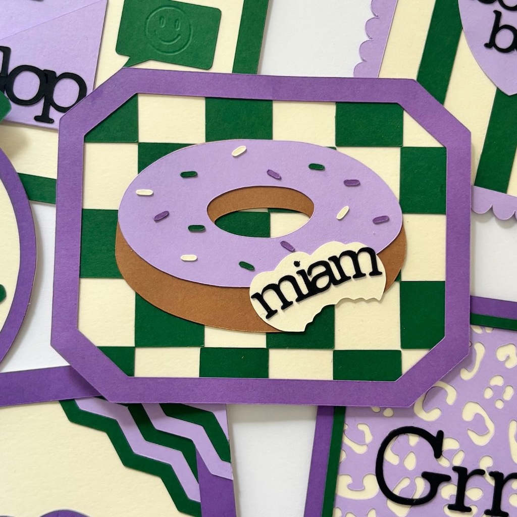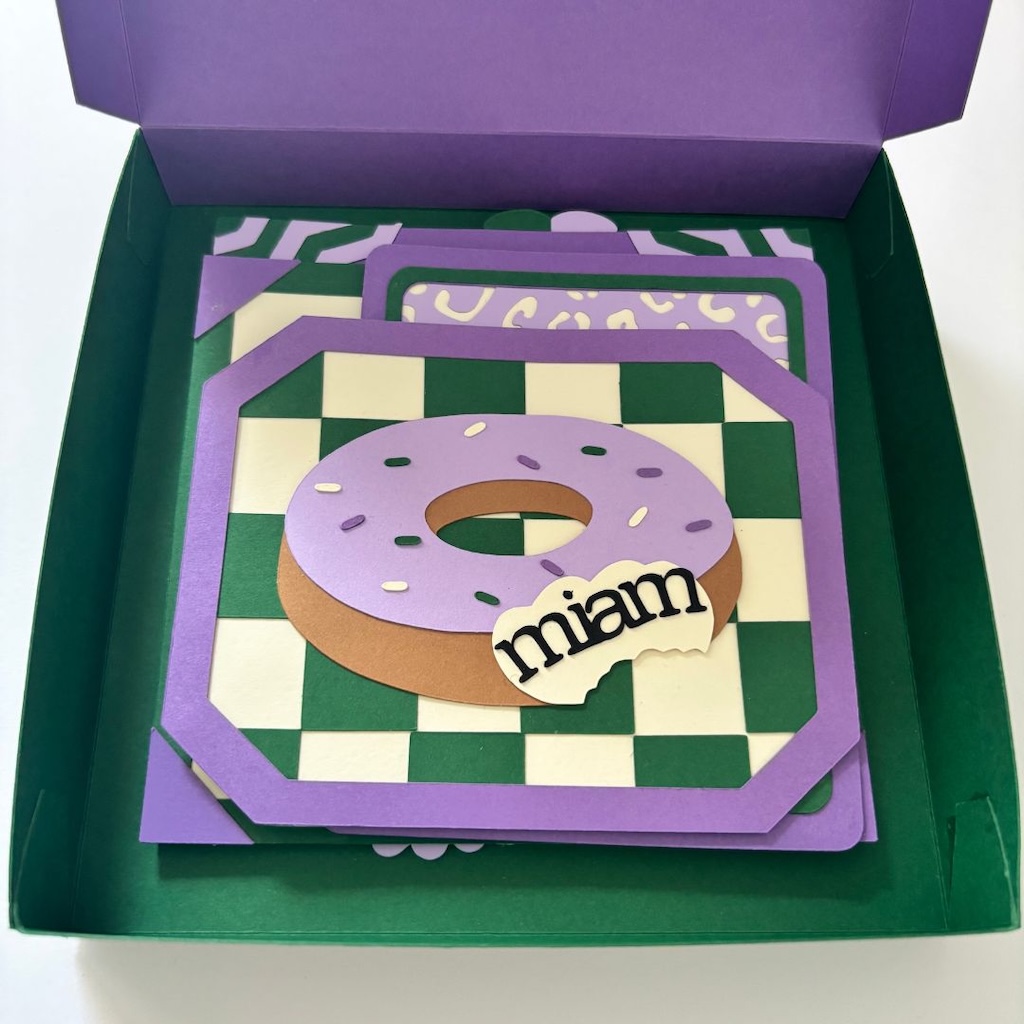 - « miam » avec son donuts gourmand (12 x 9 cm environ)