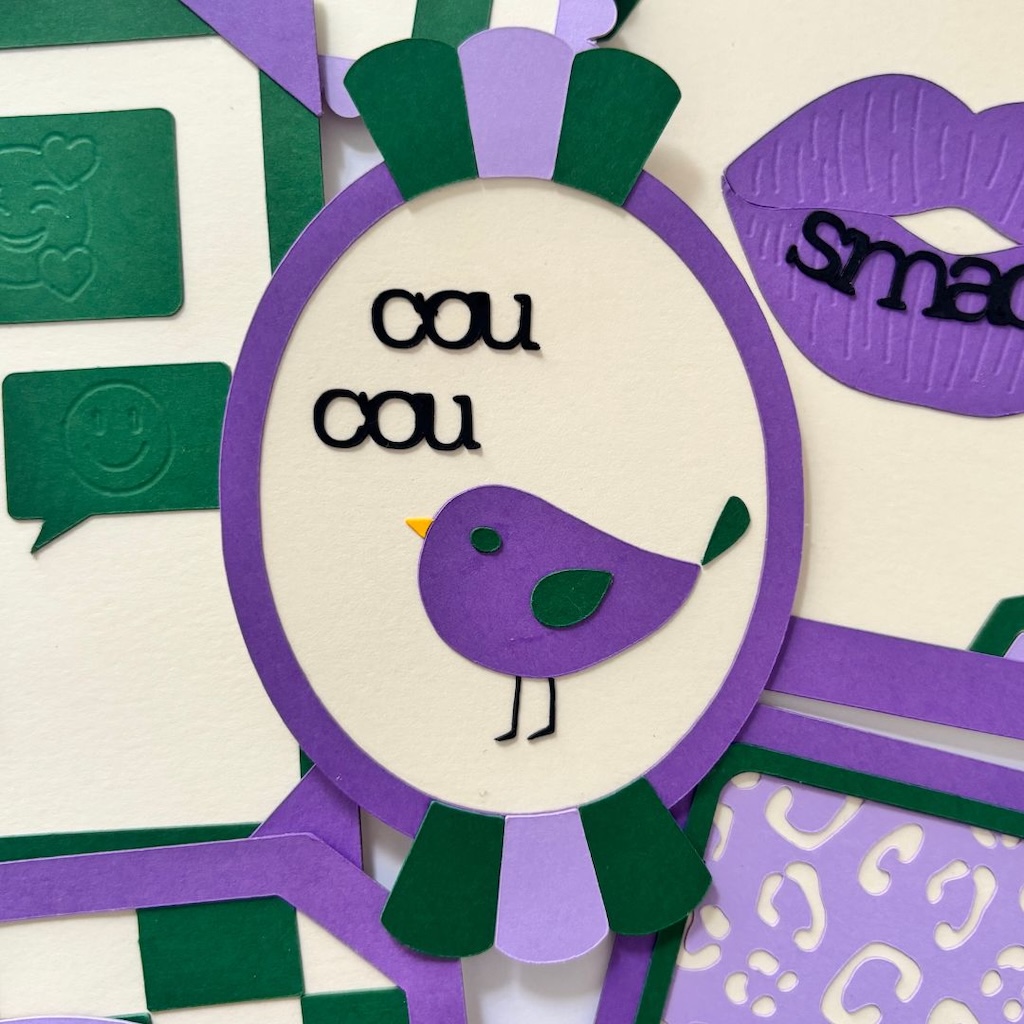 - « cou cou » avec son oiseau malicieux (7 x 11 cm environ)