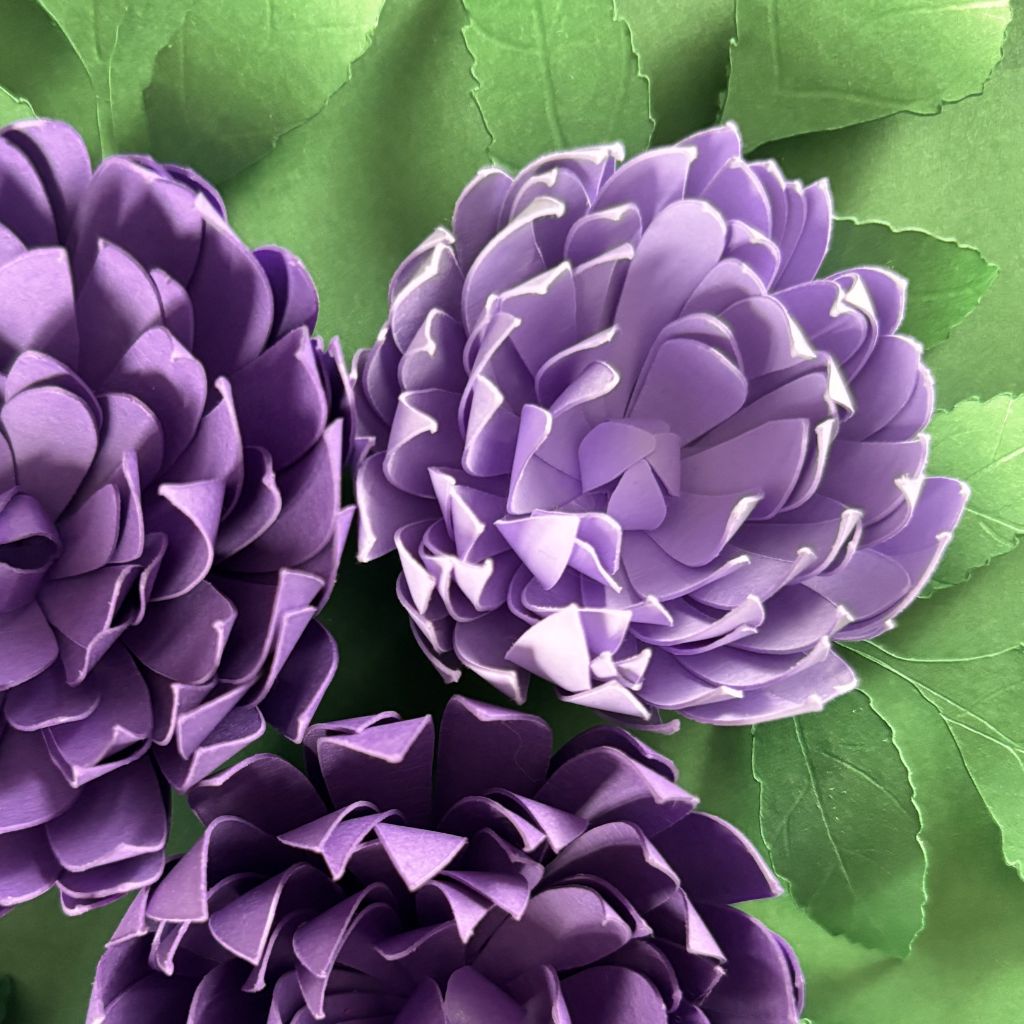 Avec le kit paper art cadre fleuri, créez une éclosion de dahlias dans un camaïeu de violets rehaussé de touches de bleu et composez un tableau végétal poétique en relief.