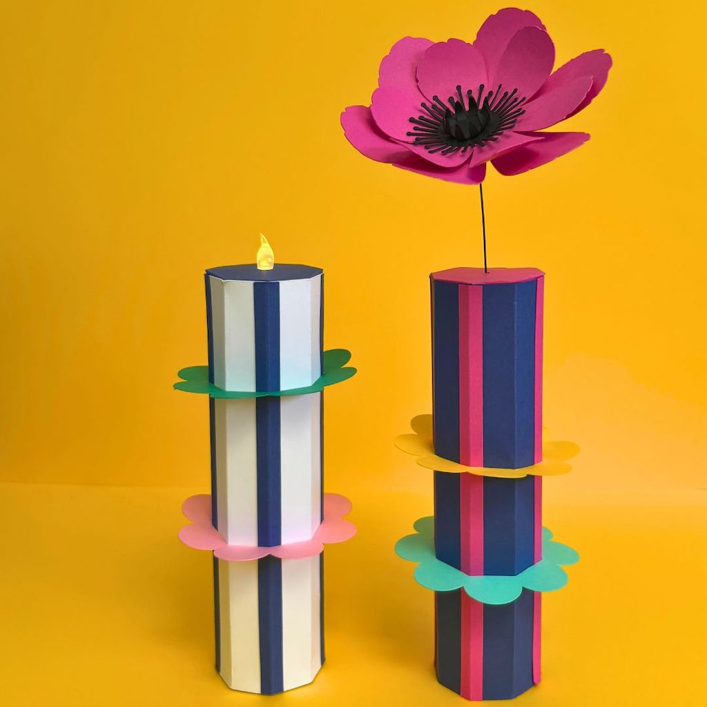 Apportez une touche de décoration originale avec cet objet déco en papier 2 en 1 ingénieux qui, soliflore, se transforme, une fois renversé, en bougeoir et inversement.