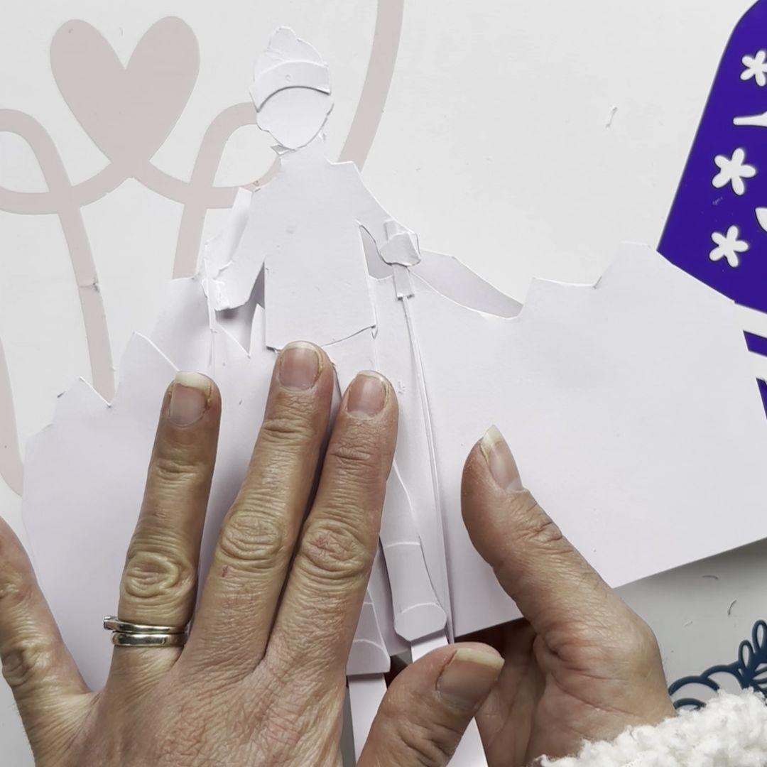 Etape 12 du tuto pour réaliser la silhouette d'un skieur dans du papier blanc